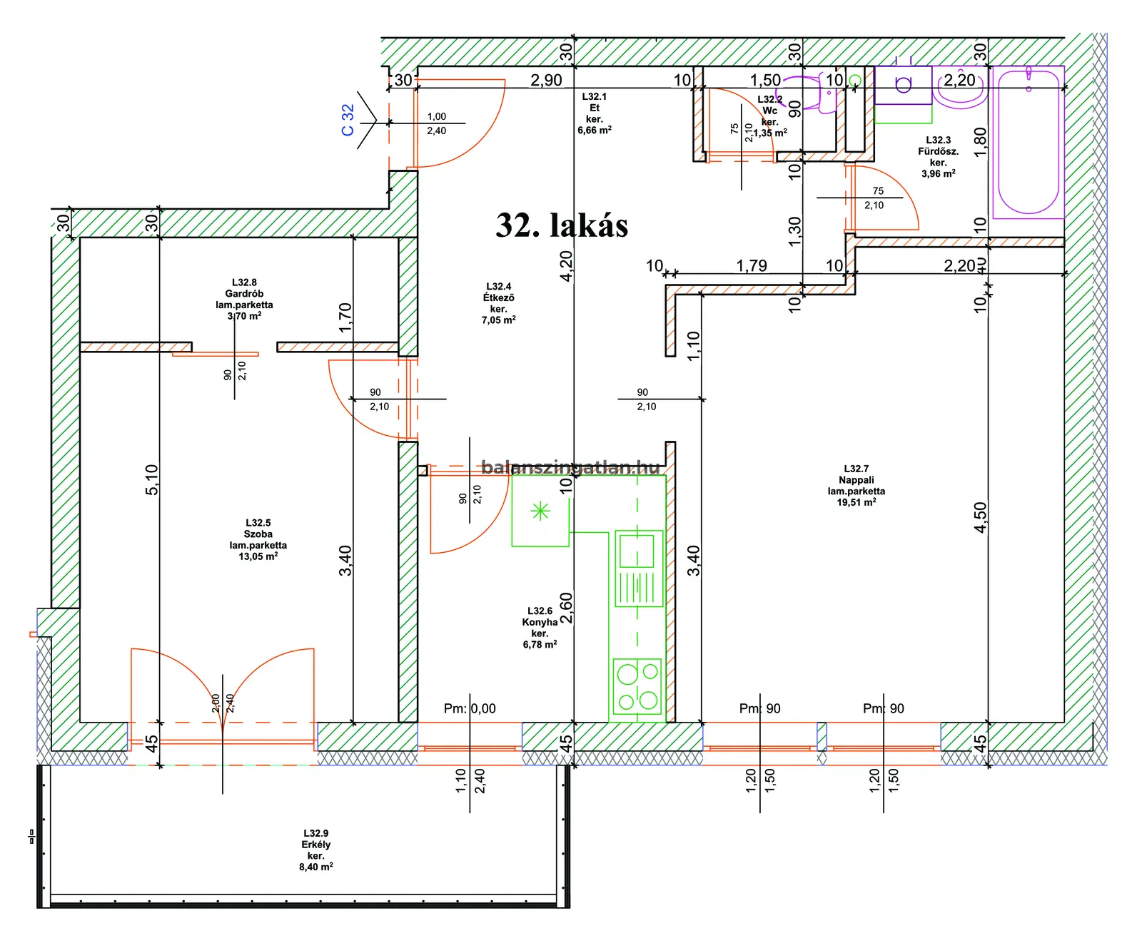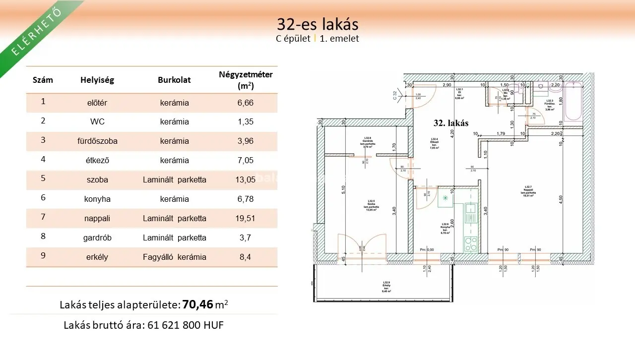 Alaprajzon: 32-es lakás