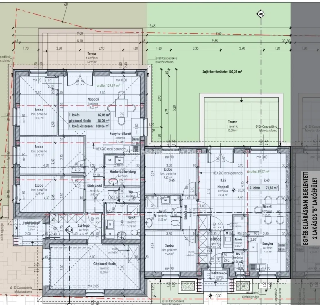 • Gépkocsi-tároló: 18,00 m²