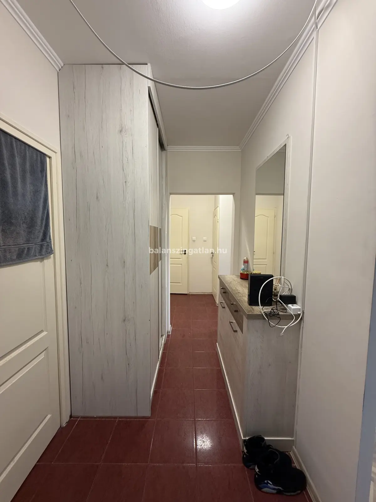 A lakás egy 1989-ben épült, 10 emeletes, liftes, szigetelt, csúsztatott zsalu szerkezetű társasház 5. emeletén található.